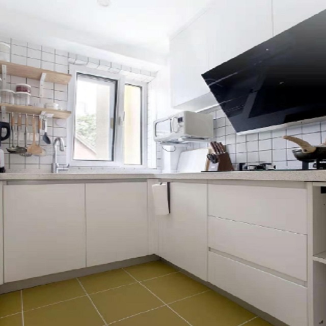 廚房搭配油煙灶具,櫥柜。