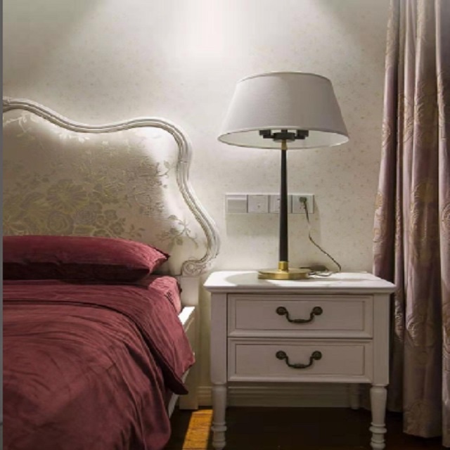 床頭搭配小柜子,臺(tái)燈,方便起夜或者臨時(shí)照明