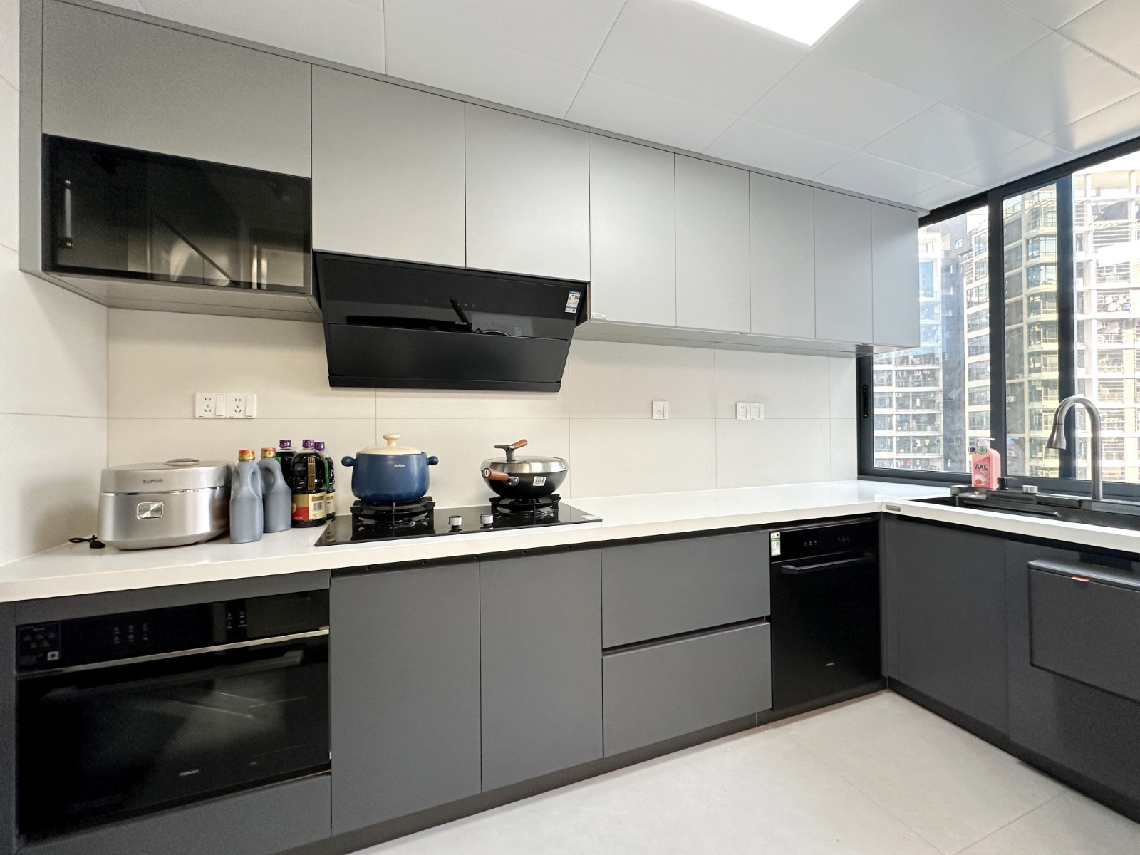 以淺灰色和深灰色為主色調(diào)?;疑臋还窈桶咨呐_(tái)面形成了鮮明的對(duì)比,使空間顯得時(shí)尚且富有質(zhì)感。